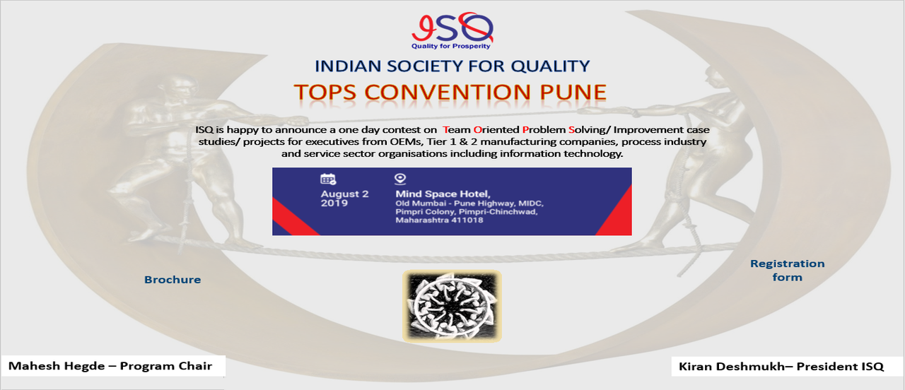 ISQ Pune Chapter announce the TOPS Convention 2024, a one-day contest on Team Oriented Problem Solving / Improvement case studies / projects