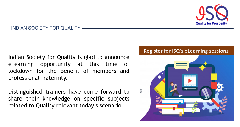 ISQ Pune Chapter is happy to bring another Knowledge Sharing Session for the benefit of Quality fraternity, academicians and professionals and invites registrations