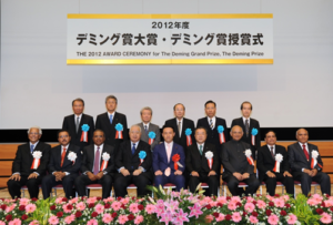 Standing left to right : M r. Tsuneo Kita , President & CEO – Nikkei Inc. , Mr. Tadaaki Jagawa , President and CEO – Union of Japanese Science and Engineers, Mr. Masahiro Sakane , Vice Chairman – Deming Prize Committee, Chairman – Komatsu Limited , Dr. Noriaki Kano, Chairman – Deming Prize for Individuals Selection Committee , President – Kano Quality Research Office, Dr. Hiroshi Osada , Chairman – Deming Prize Examination Committee, Professor – Tokyo Institute of Technology, Dr. Kazuyuki Suzuki, Former Chairman – Nikkei QC Literature Prize Selection Committee, Professor – The Univ. of Electro-Communications.